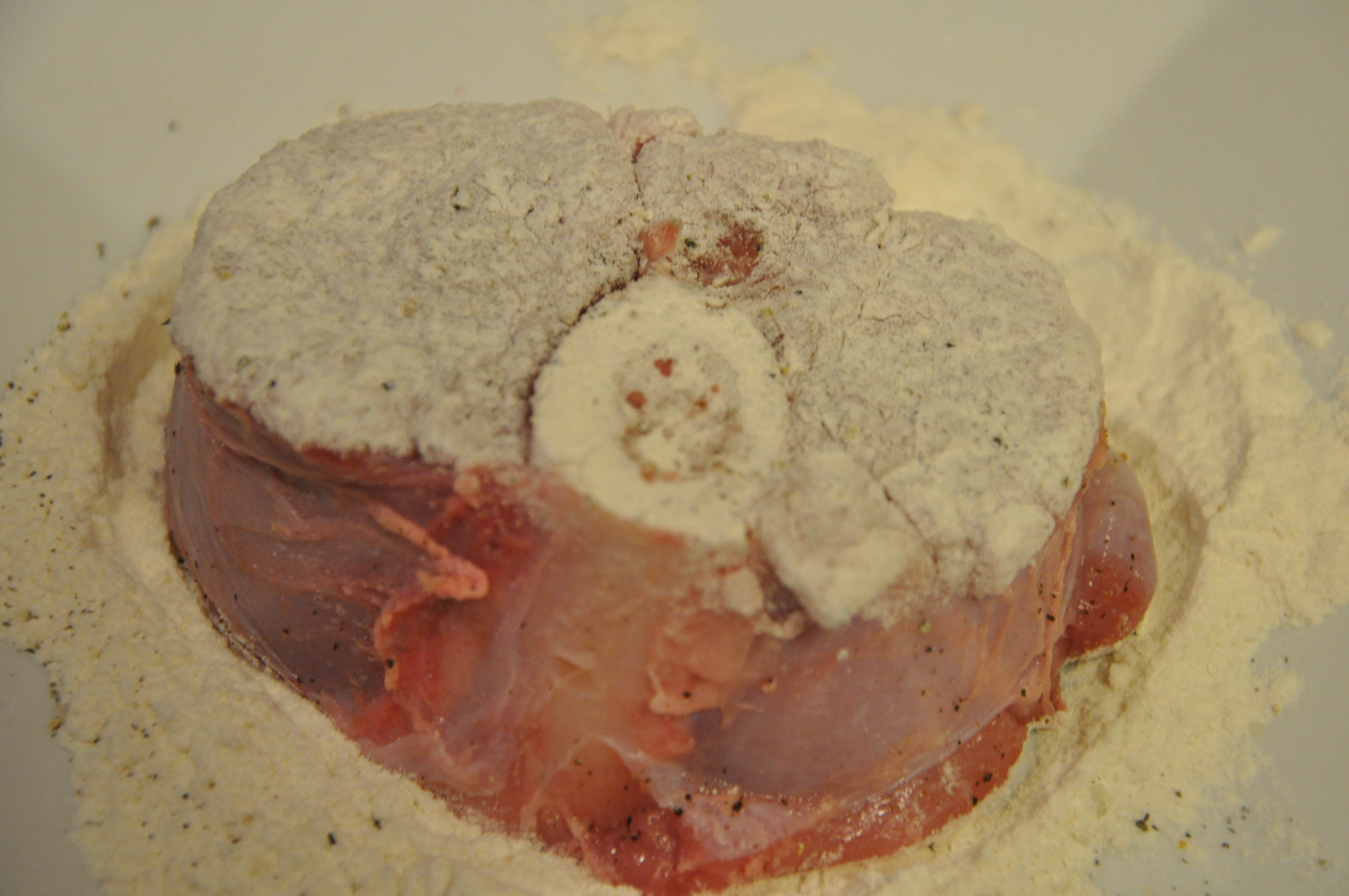 Dip veal in flour shaking off excess.