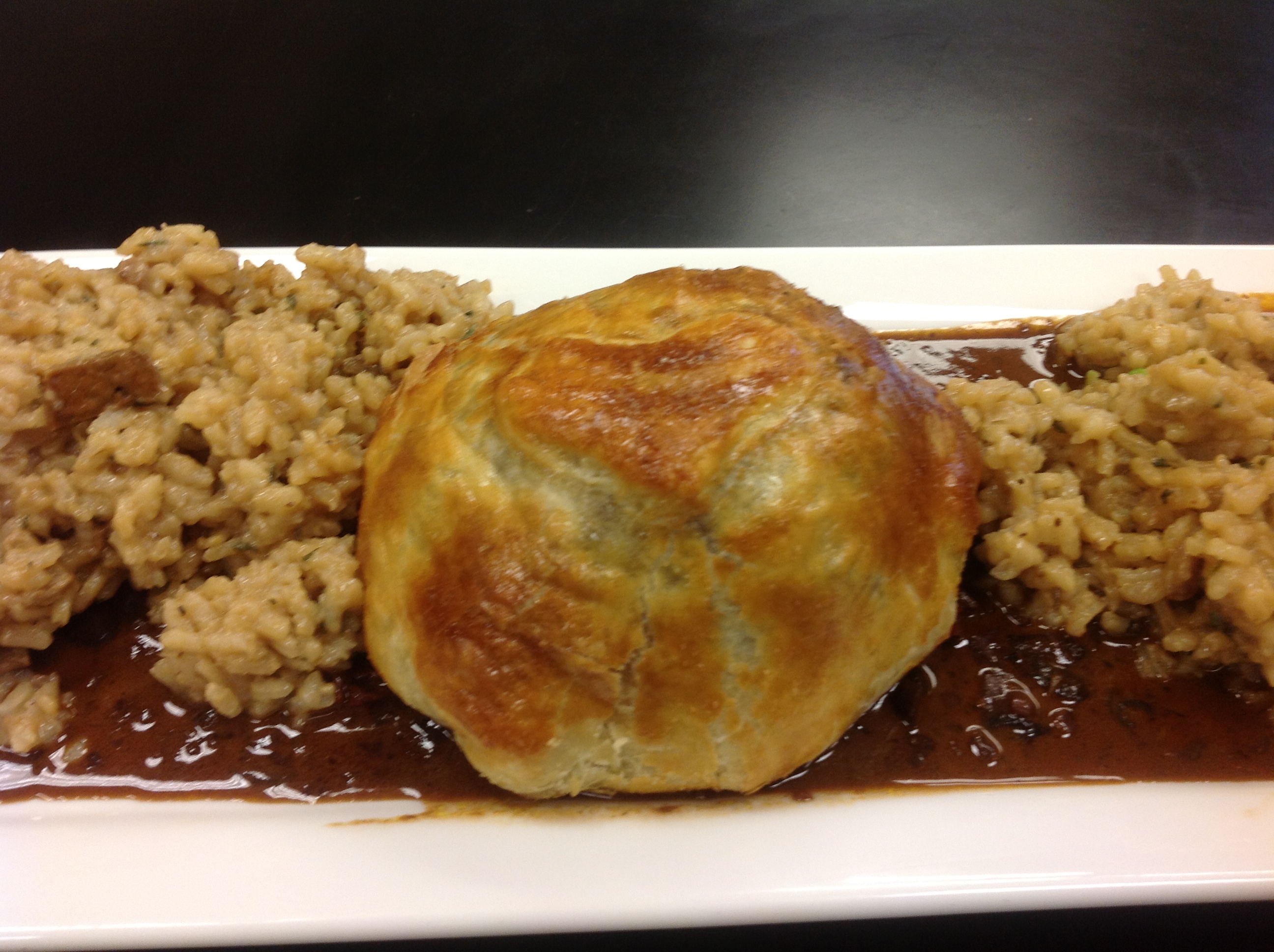 Beef Wellington with a Wine Reduction Sauce