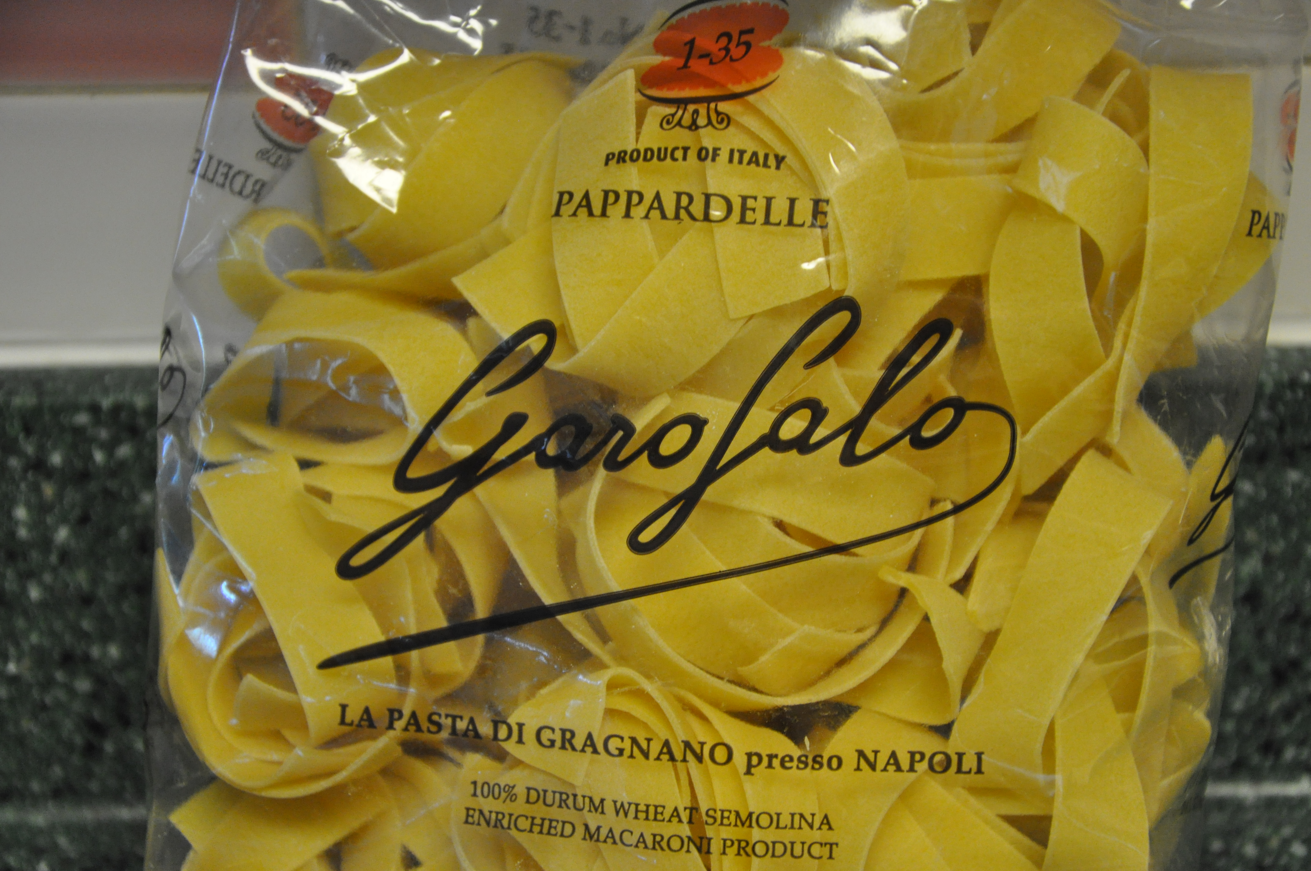 Several weeks ago I had the opportunity to do a little business traveling in New York City and made several shops in grocery stores, my favorite was one in Little Italy. What always amazes me about shopping in these stores is the variety of fresh meats, salami, hanging from the ceiling, as well as many types of sausage. I always feel like a kid in a candy store when I’m there. The other food items that I am always intrigued with are all the different types of pastas, the good stuff, not store name brands, but the really good Italian pastas. I purchased several varieties to bring back home, one of which was the Pappardelle.