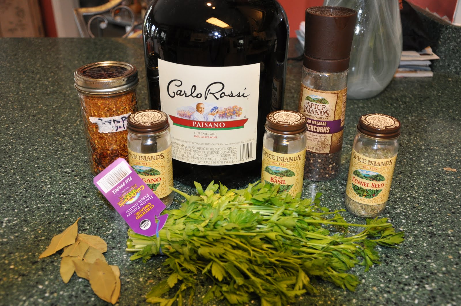 For the meatballs you will need, 1 pound ground round, 1/2 pound ground pork, ½ pound ground veal, 3 eggs, 1 chopped onion, minced garlic, Italian flavored bread crumbs, fresh parsley, milk, basil, oregano, grated parmesan cheese, red pepper flakes, black pepper, salt, and fennel seeds….(yes)…for the sauce you will need extra virgin olive oil, bacon, chopped onions, garlic, red italian wine, tomatoes, tomato paste, fresh parsley, basil, oregano, bay leaves, red pepper flakes, black pepper and fennel seeds.