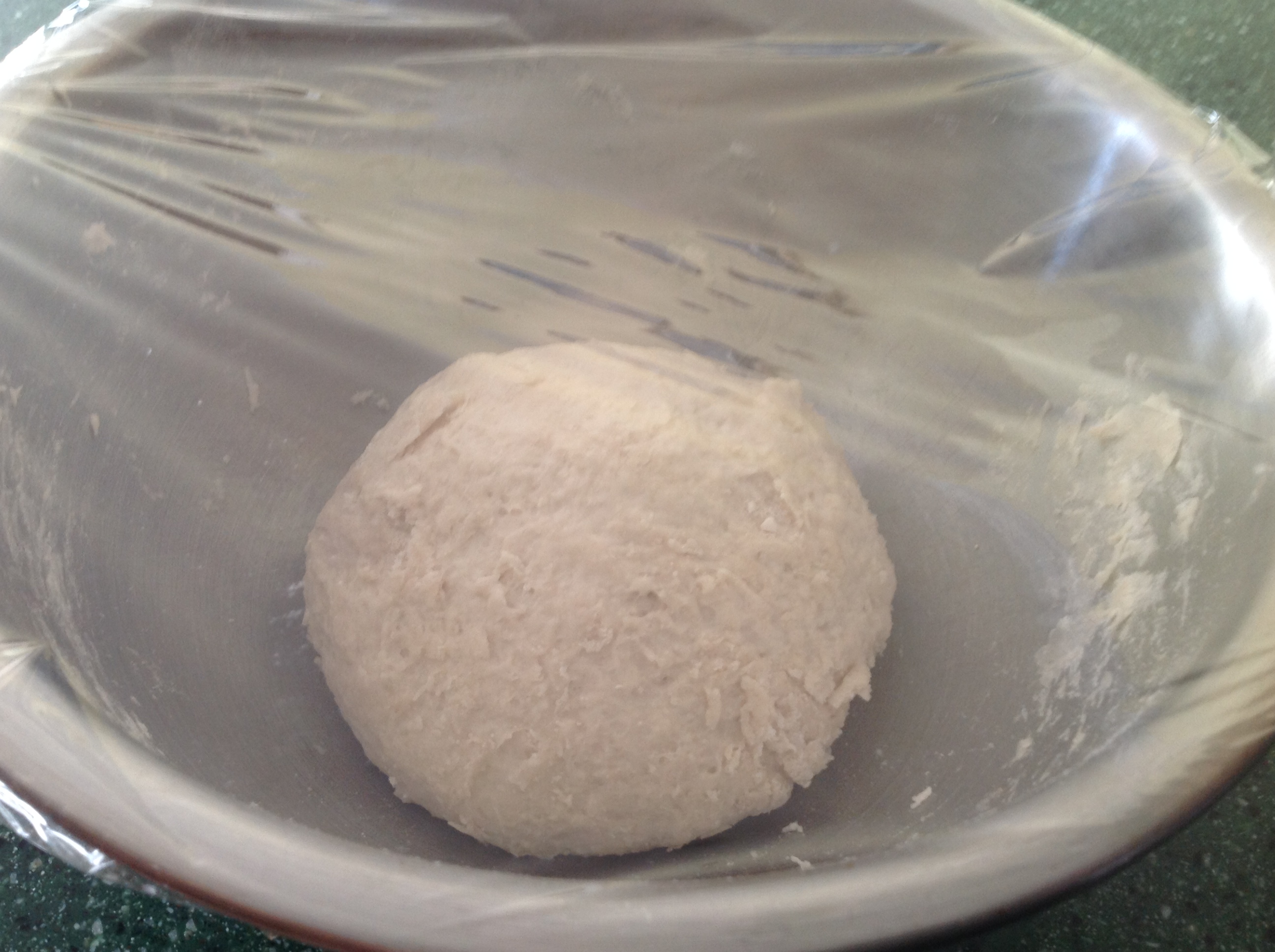 Follow the direction on the back of the box for making this yummy bread, cover bread with plastic wrap and place in a warm spot until doubled (if you have time), about 1 hour.